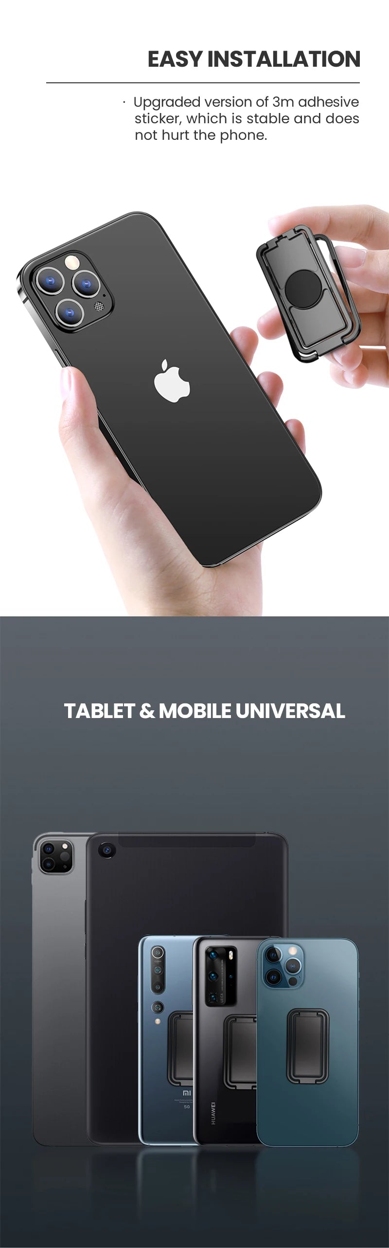 [Wide Compatibility]: This multifunctional sturdy phone loop finger holder is suitable for most smartphones on the market.Just need to attach cell phone finger ring holder to a flat and smooth surface.Noplease stick on the phone case instead of the phone, as not to affect wireless charging.