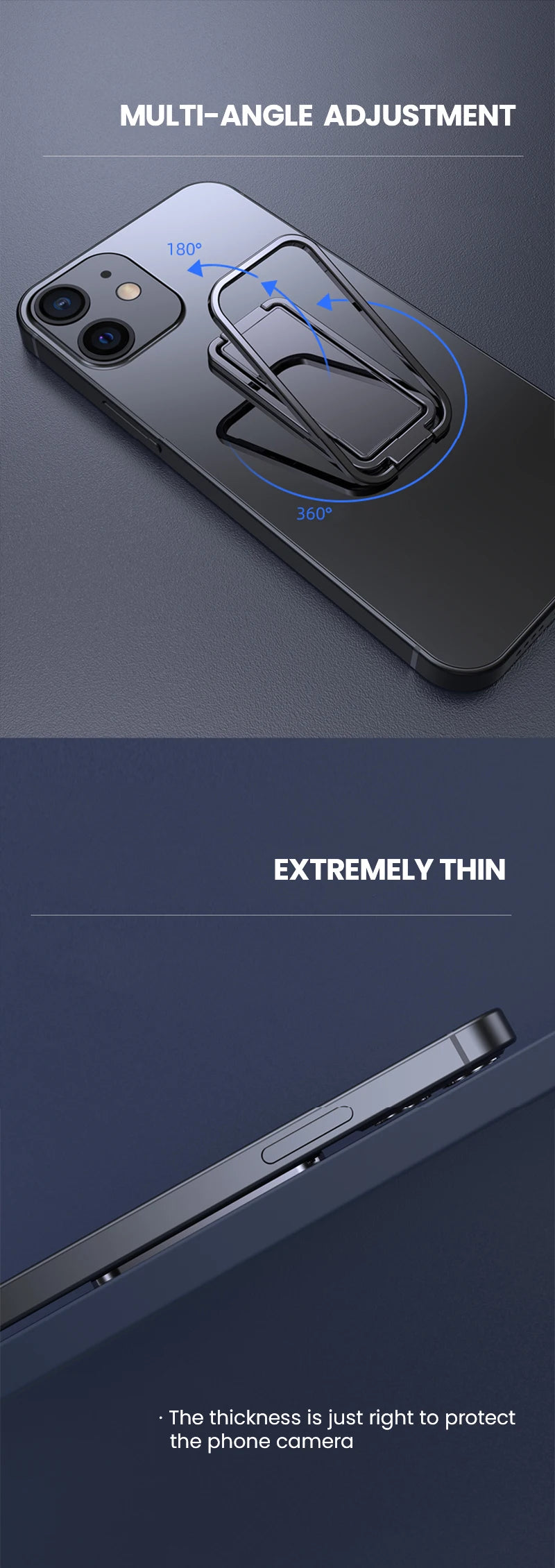 [Portable]: This metal cell phone finger ring holder back stand is 360 degree rotation and 180 degree folding, you can use it in your desk, office desktop, nightstand, kitchen counter.