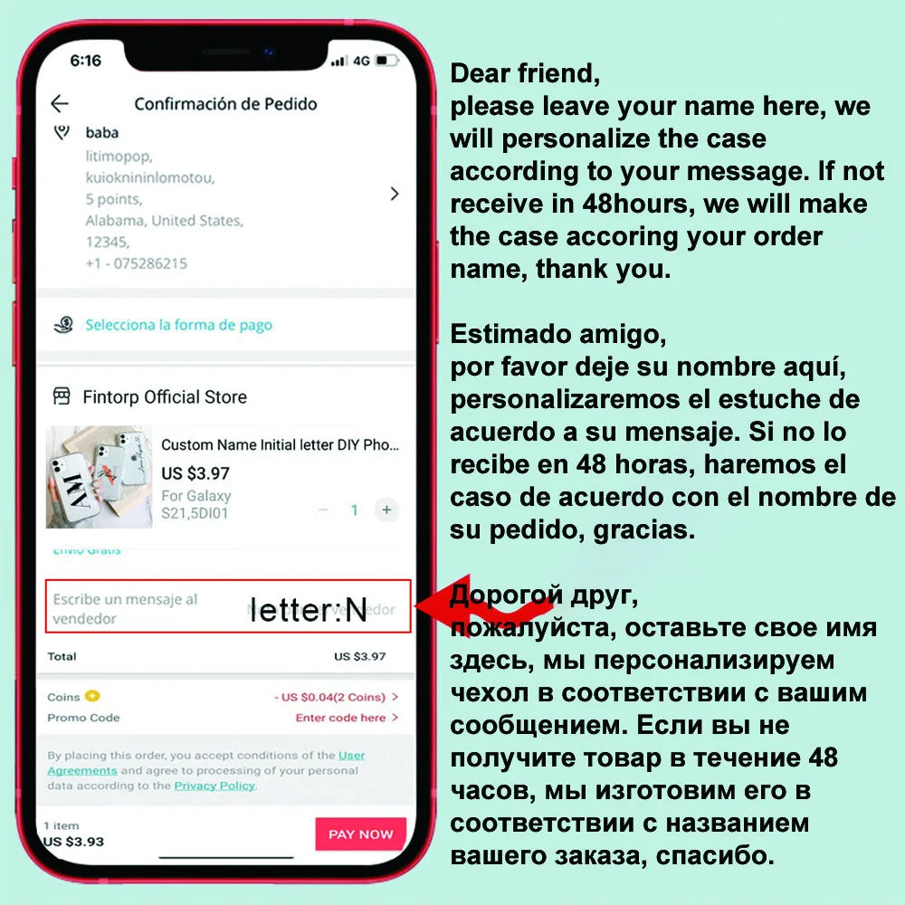 A1: Checkout page—Leave a message for the seller with :Name/Letter/Name+Letter...