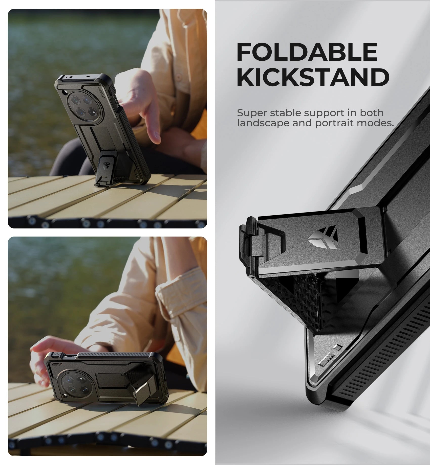 【Built-in Screen Protector & Kickstand】This OnePlus 12 Phone Case with foldable stand supports hands-free viewing in portrait or landscape mode, you can freely adjust the angle as needed. Built-in Screen Protector and Shockproof TPU back cover will be 360°protect your OnePlus 12 5G phone.