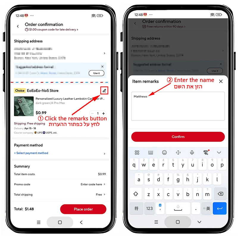 Checkout page—Leave a message for the seller with :Text/Name/Letter...