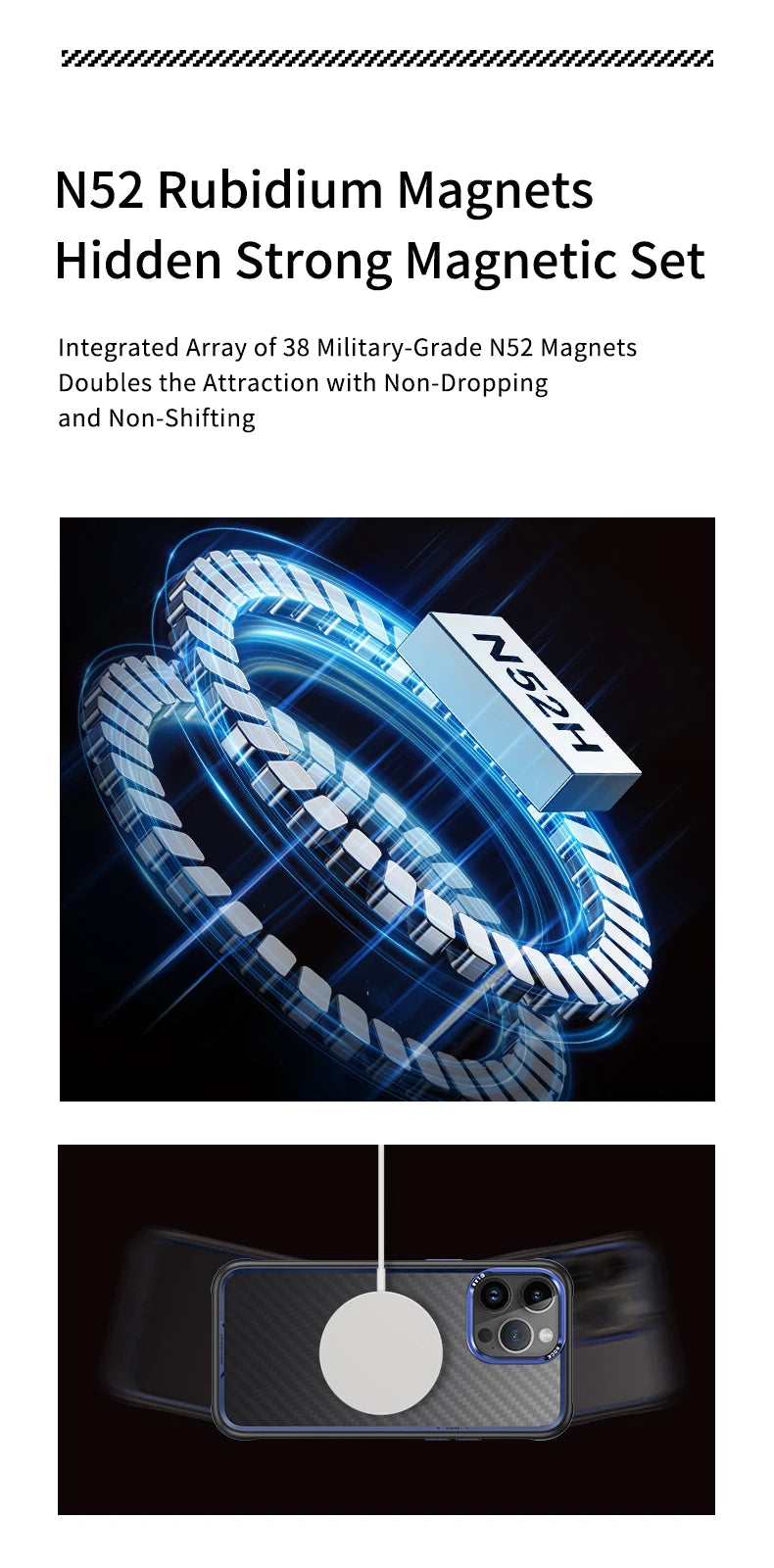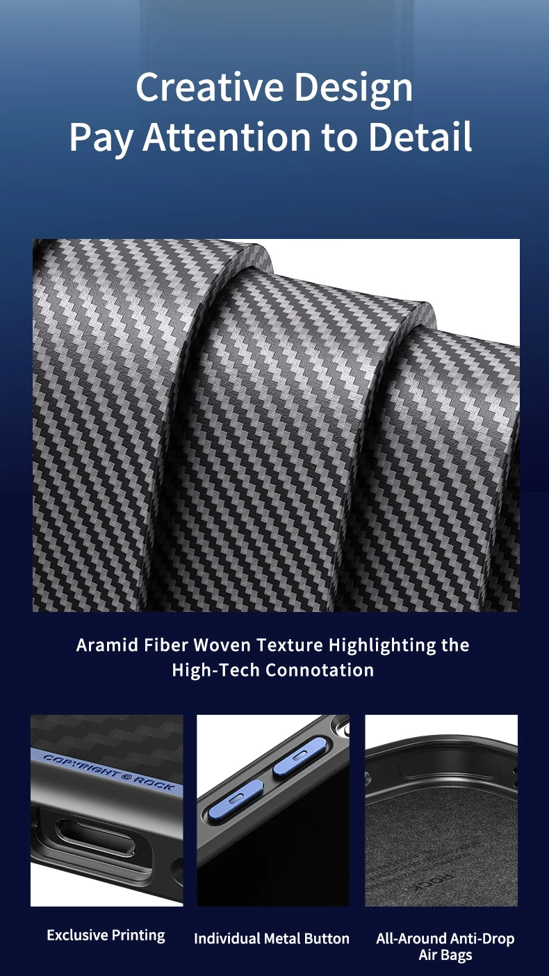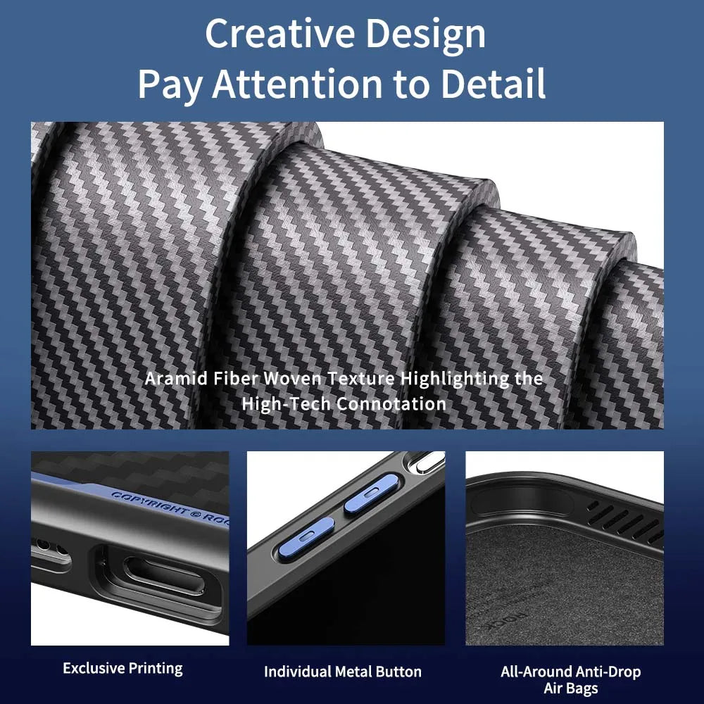 The ROCK Kevlar Magnetic Case offers military-grade shockproof protection, ensuring your iPhone 15 Pro Max remains safe from drops and impacts.
