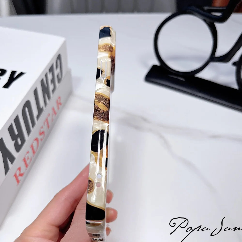 Vintage Glitter Leopard Print Phone Case For IPhone 16 15 13 12 11 Pro Max 14 Plus Dream Shell Leopard Marble Texture Hard Cover